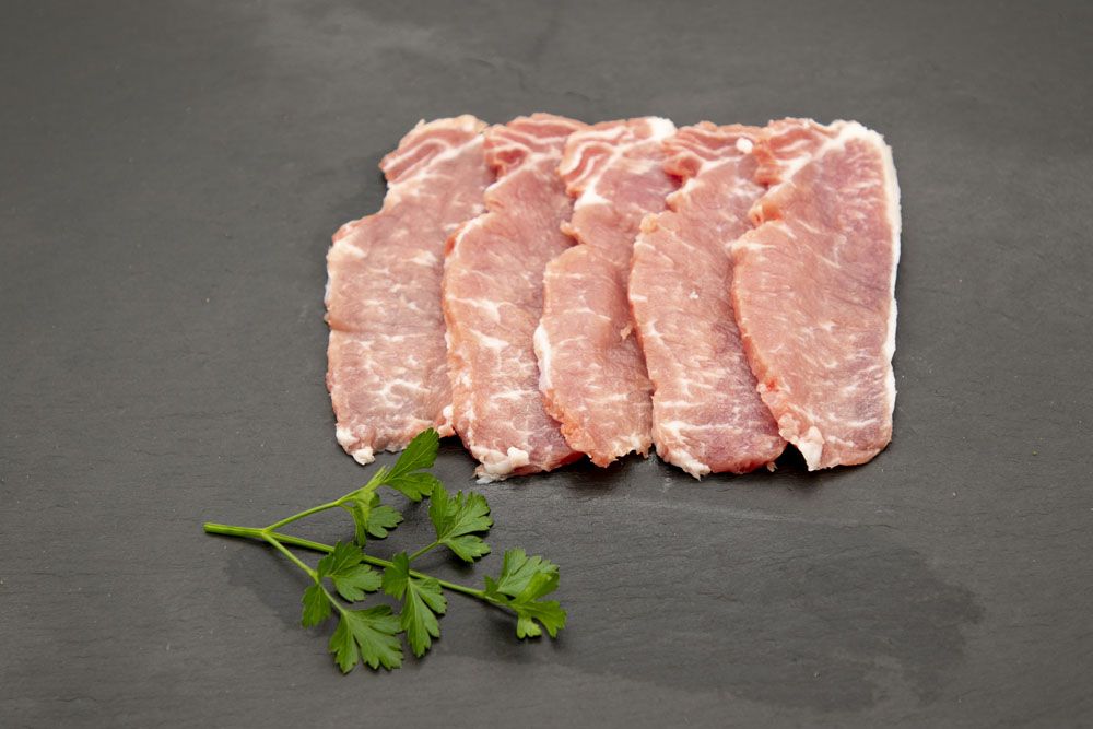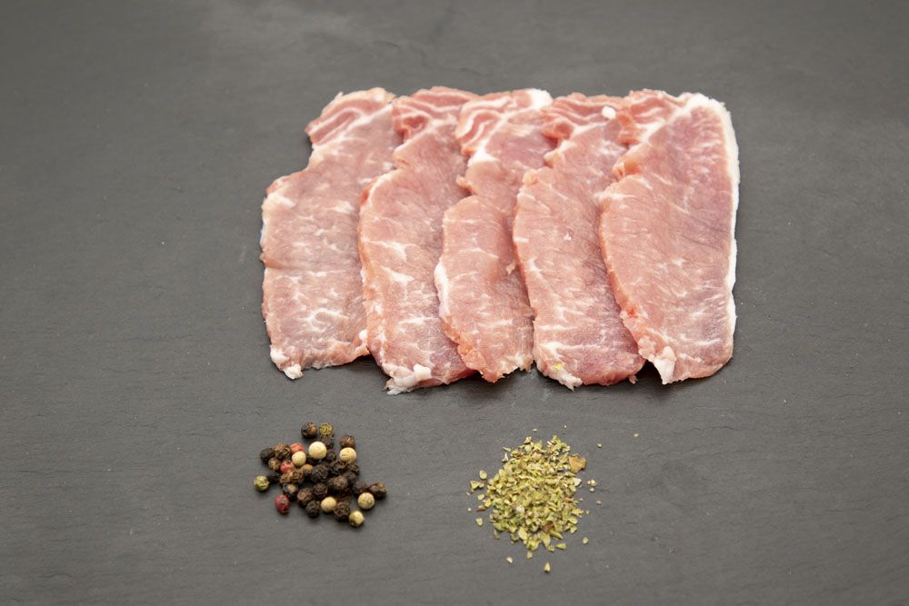 Se presentan frescas de la matanza de la semana en bandejas termoselladas con atmósfera controlada o envasadas al vacío y congeladas. En cualquier caso el paquete mínimo será de 1 kilo aproximadamente.