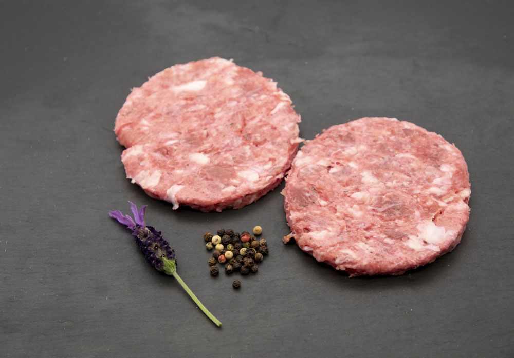 Formato hamburguesa estándar. Bandejas de 4 unidades termoselladas y con atmosfera controlada. El peso aproximado del pack es de 400 gramos.