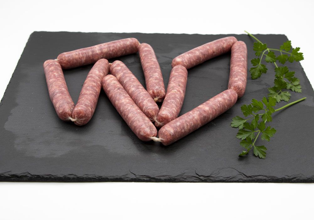 Elaboradas con magros de cerdo ibérico, y aderezadas con sal, Elaboradas con magros de cerdo ibérico, y aderezadas con sal, pimentón de la Vera para el caso de las salchichas rojas y especias naturales. Se presentan en bandejas de termoselladas y con atmósfera controlada. El peso aproximado del pack es de 430 gramos.